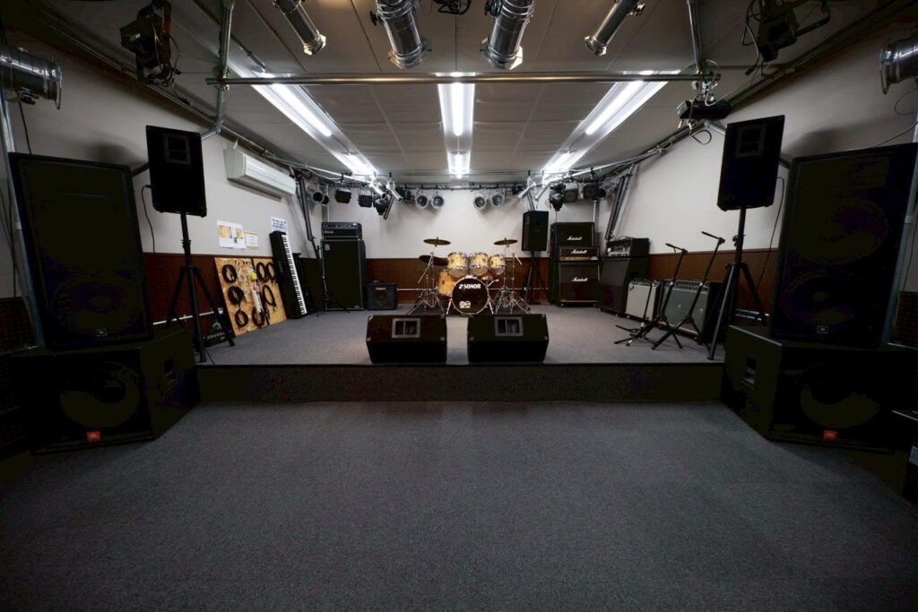 30帖というMRTスタジオ最大の広さを誇る空間!ライブやレコーディング等にも対応できるプロ仕様のPAや照明が揃い、充分な客席スペースも確保。SONORのドラムセットをはじめ、充実の機材で多種多様なイベントが可能です!